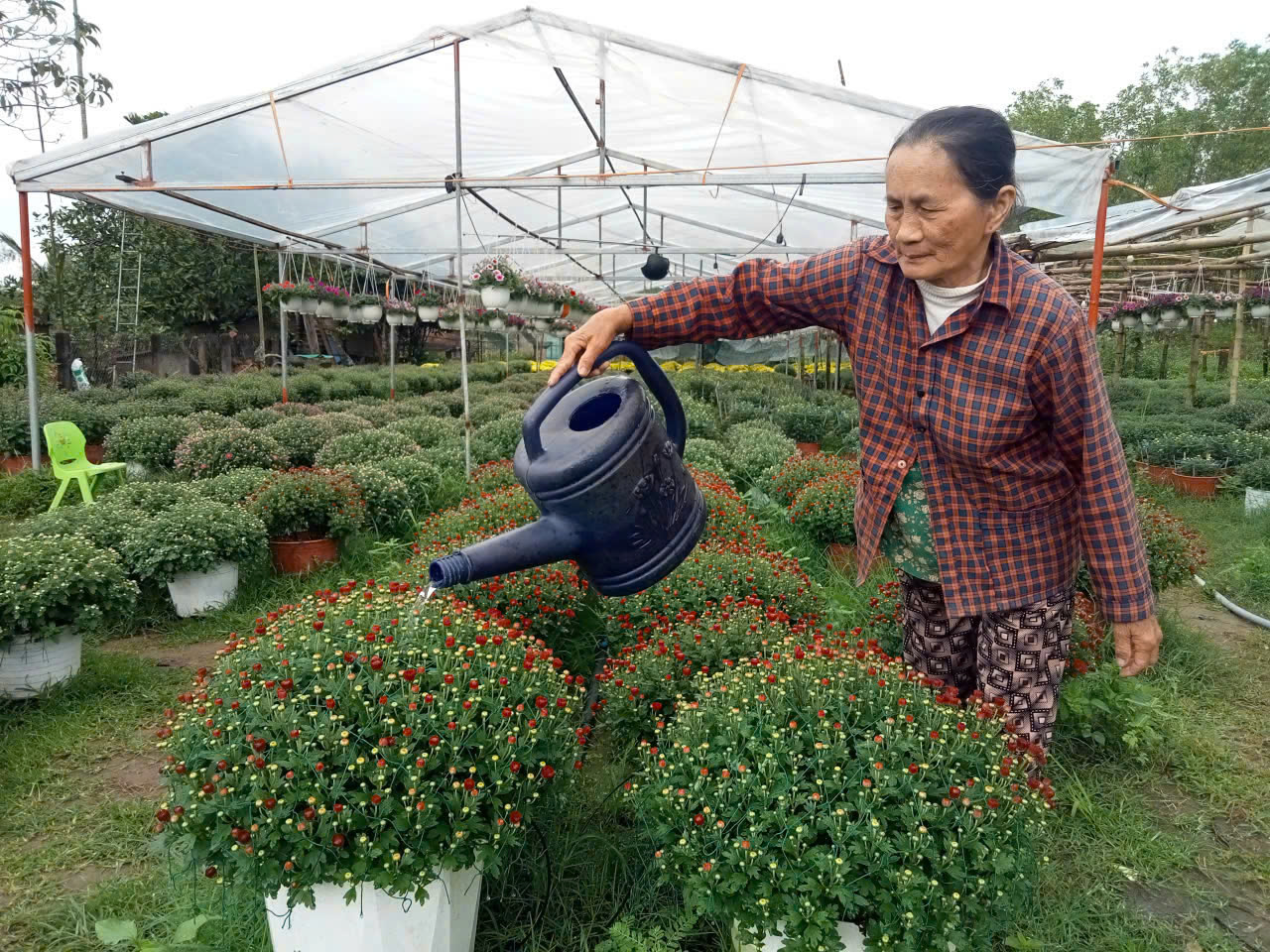 Hằng năm, cận Tết Nguyên đán, vườn anh Đạt xuất ra hàng nghìn chậu hoa các loại, doanh thu từ 200 - 250 triệu đồng. Trừ chi phí, anh Đạt thu lãi hàng trăm triệu đồng mỗi năm, cao gấp nhiều lần trồng mì, keo trước đây.