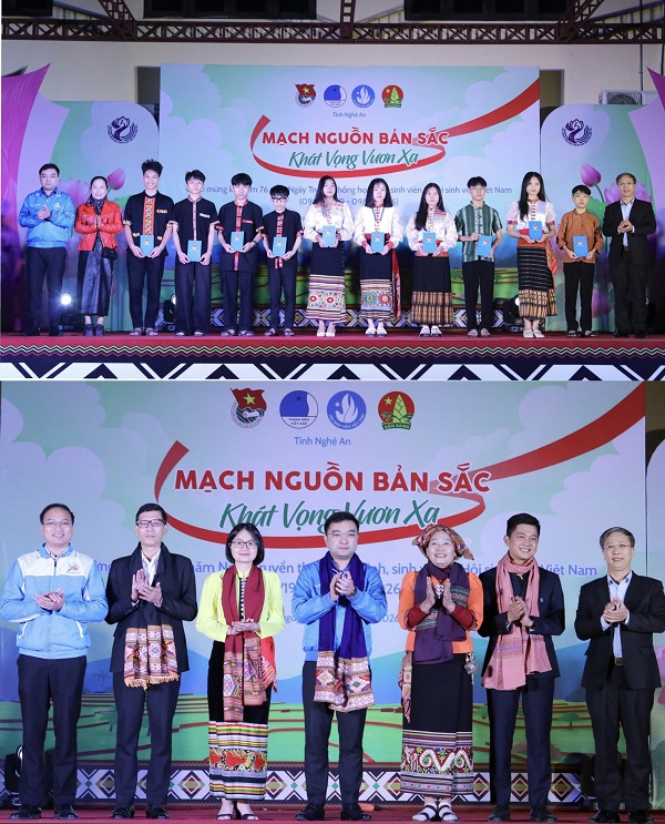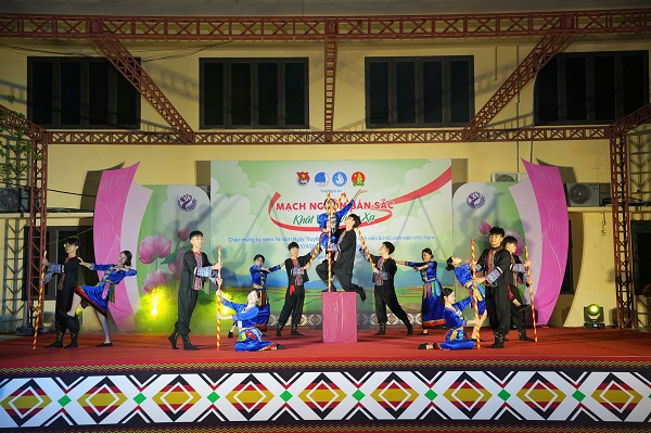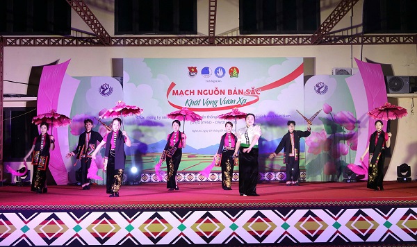 Tại chương trình, gần 1.000 đoàn viên, thanh, thiếu niên Nghệ An được tham gia nhiều hoạt động sinh hoạt cộng đồng mang đậm bản sắc các dân tộc như múa lăm vông, nhảy sạp, trình diễn cồng chiêng, làm vía cầu mong bình an, may mắn.