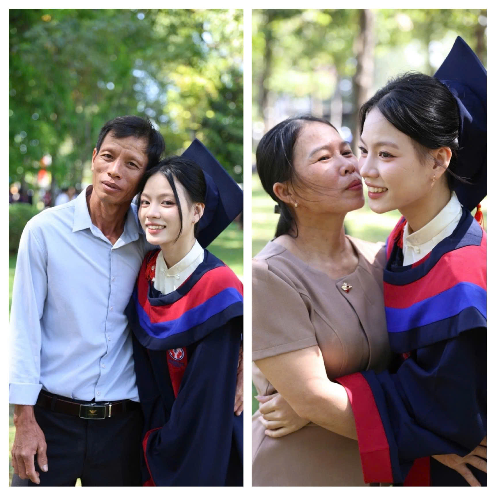 “Con biết gia đình mình không khá giả, công việc của ba mẹ cũng không ổn định, có những ngày nắng đổ lửa ba mẹ vẫn cố làm để bù đắp lại những ngày mưa gió không đi làm được. Dù vậy, ba mẹ vẫn chưa để cho chị em con thiếu thốn hay thiệt thòi bất cứ điều gì với bạn bè. Hôm nay, con mặc trên người áo cử nhân, cầm trên tay tấm bằng tốt nghiệp con biết tấm bằng này nặng lắm, nặng bởi những giọt mồ hôi của ba, những lo toan của mẹ, những khoản tiền gửi vội mỗi tháng vì sợ con ăn không đủ no...", những chia sẻ xúc động của nữ thủ khoa.