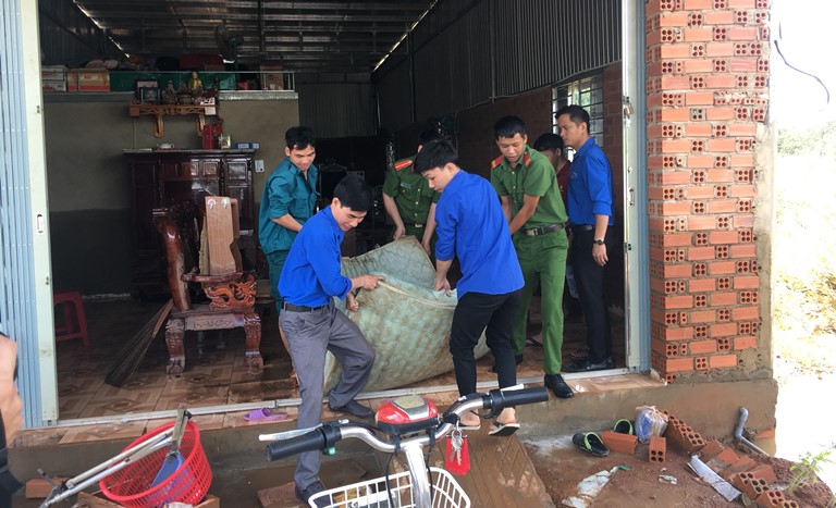 Trong 02 ngày (06, 07/10/2019), hơn 100 đoàn viên, thanh niên của 03 đơn vị Thành đoàn Đồng Xoài, Huyện đoàn Đồng Phú, Đoàn TN Công an tỉnh tập trung huy động lực lượng ĐVTN tại địa phương phối hợp cùng các lực lượng chức năng sơ tán người dân đến nơi an toàn, khắc phục hậu quả sau thiên tai như: dọn gạt bùn, vận chuyển đồ đạc, vệ sinh nhà cửa…