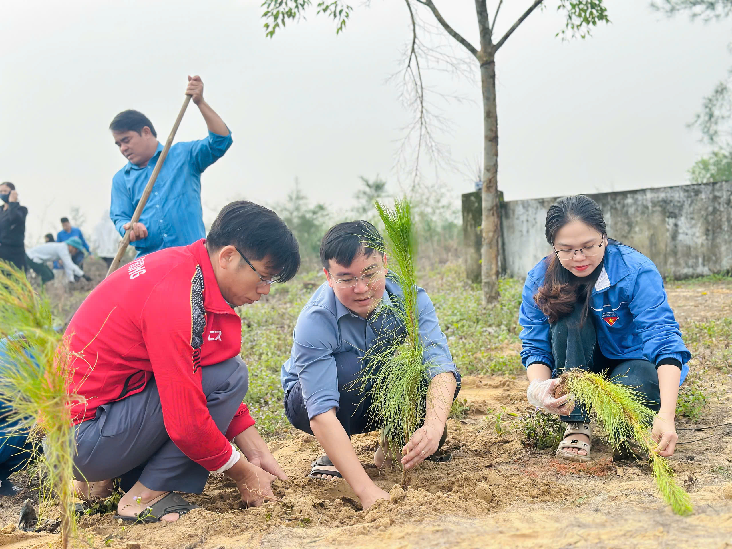 Đoàn Thanh niên xã Lộc Hà trồng thông tại rừng phòng hộ thuộc khu di tích chùa Chân Tiên. ẢNH: PHẠM ĐỨC